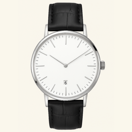 UNO — минималистичные наручные часы с чистым циферблатом и классическим кожаным ремешком.