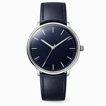 Минималистичные часы с тремя центральными стрелками и утопленным циферблатом.